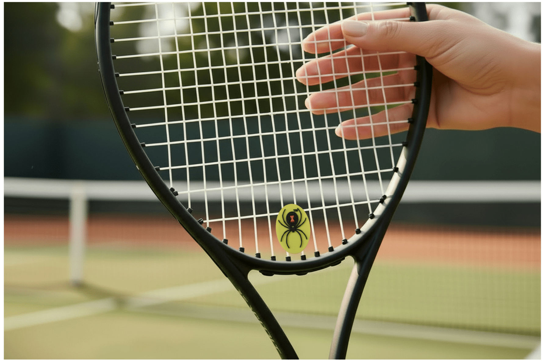 Crafted to withstand the intensity of competitive tennis, this dampener stays locked in place through your most powerful serves and crushing groundstrokes. The bold design psychology gives you that extra edge – because when your opponent sees the spider, they know you’re here to dominate.